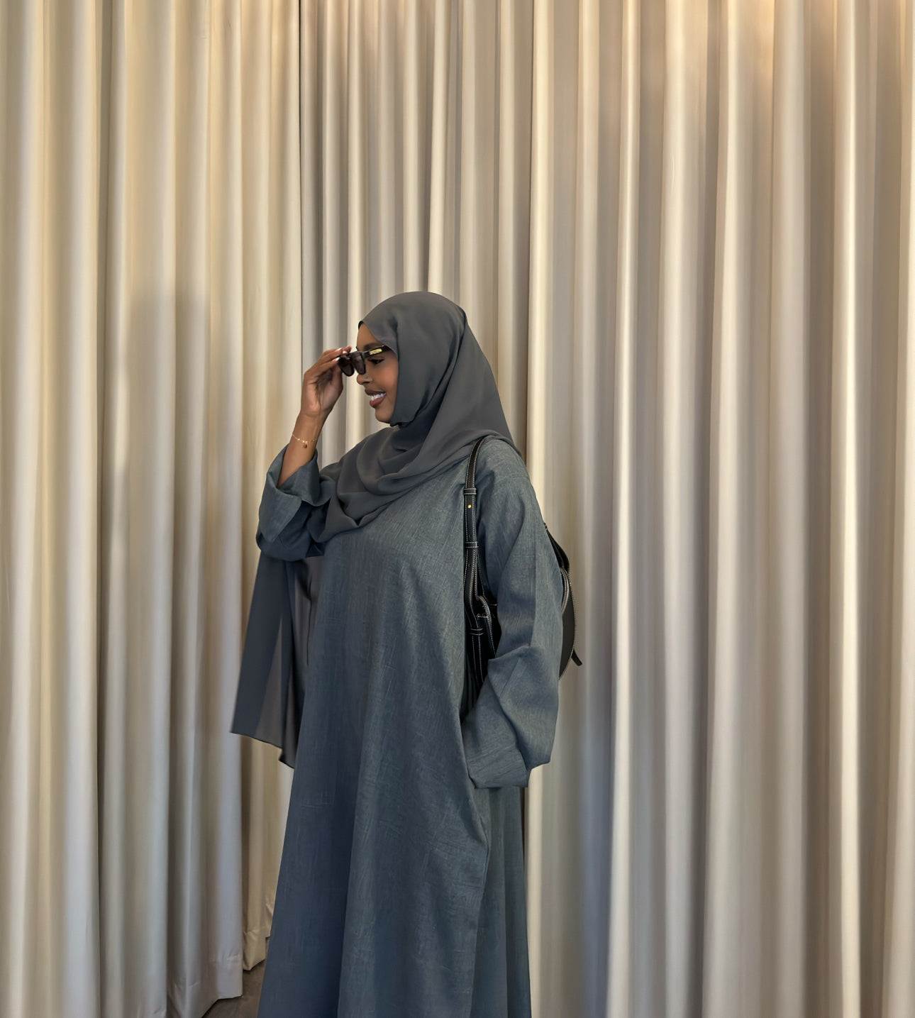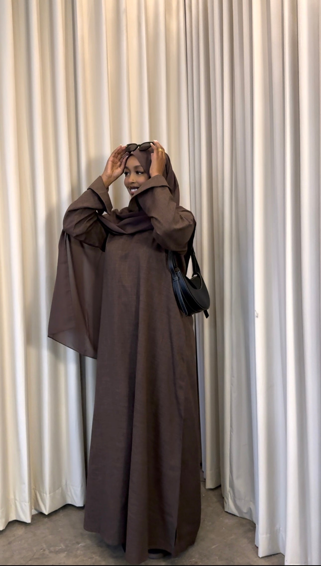 Oversized abaya with wide sleeves and pockets. Heavier feel, perfect abaya for the fall.