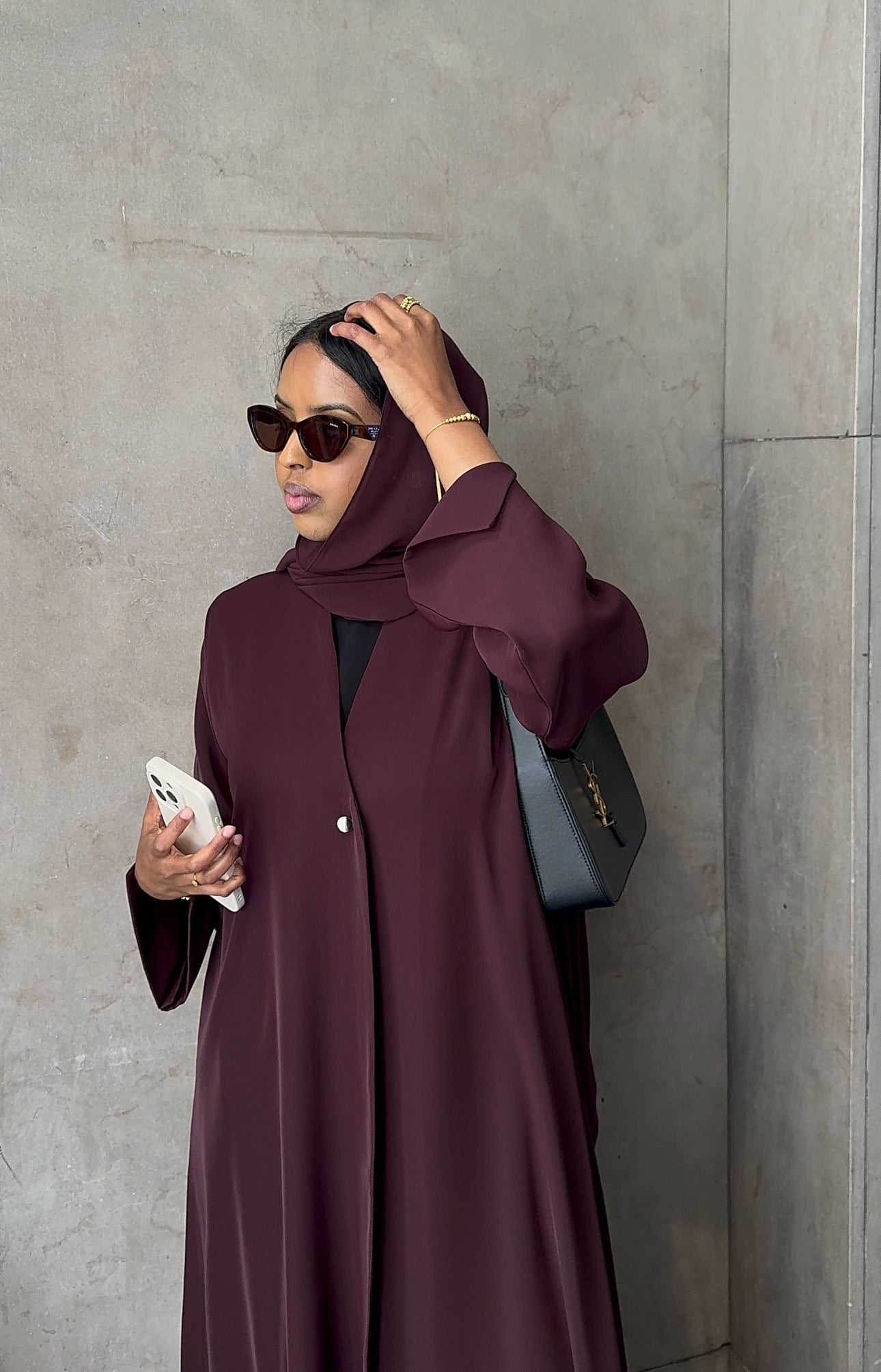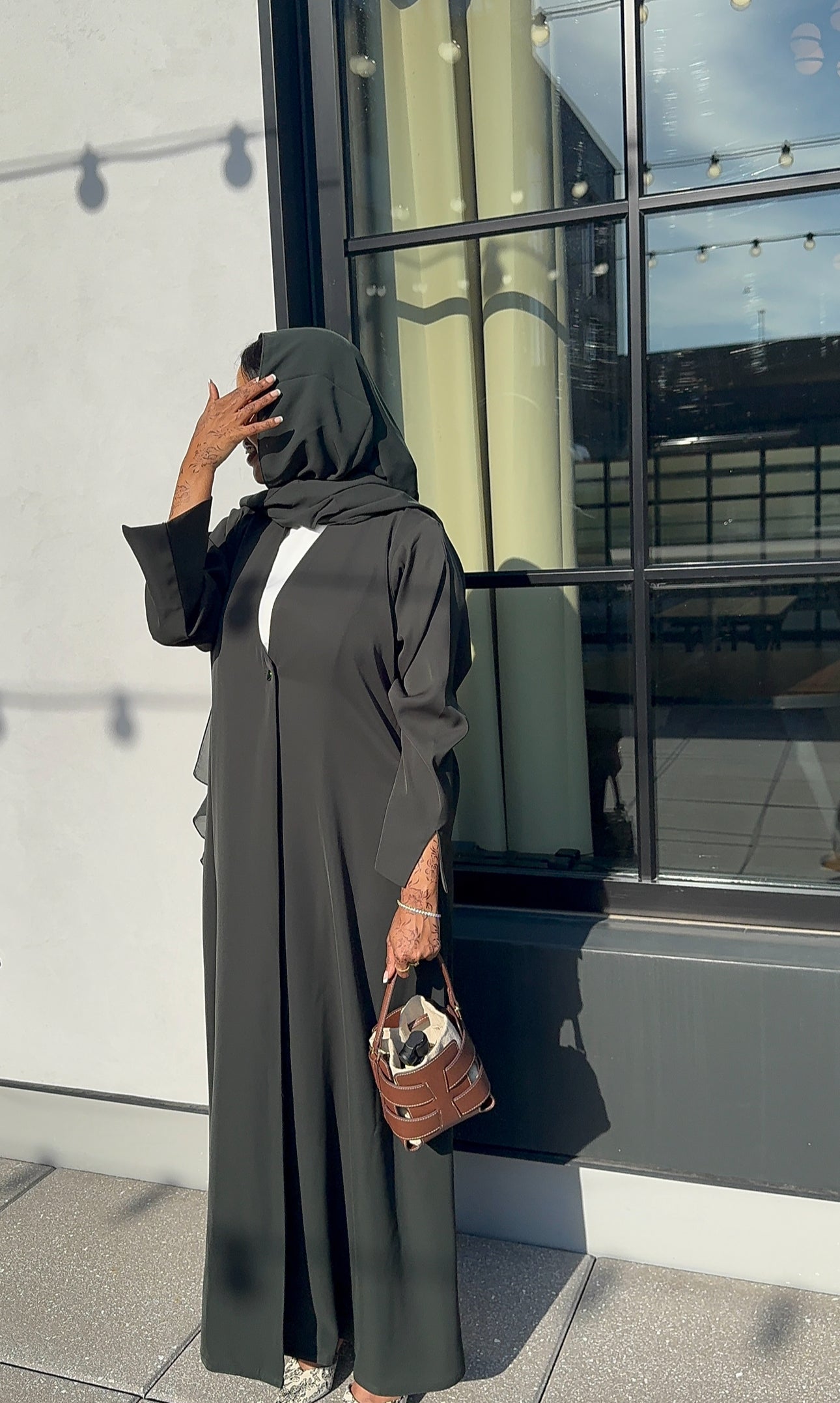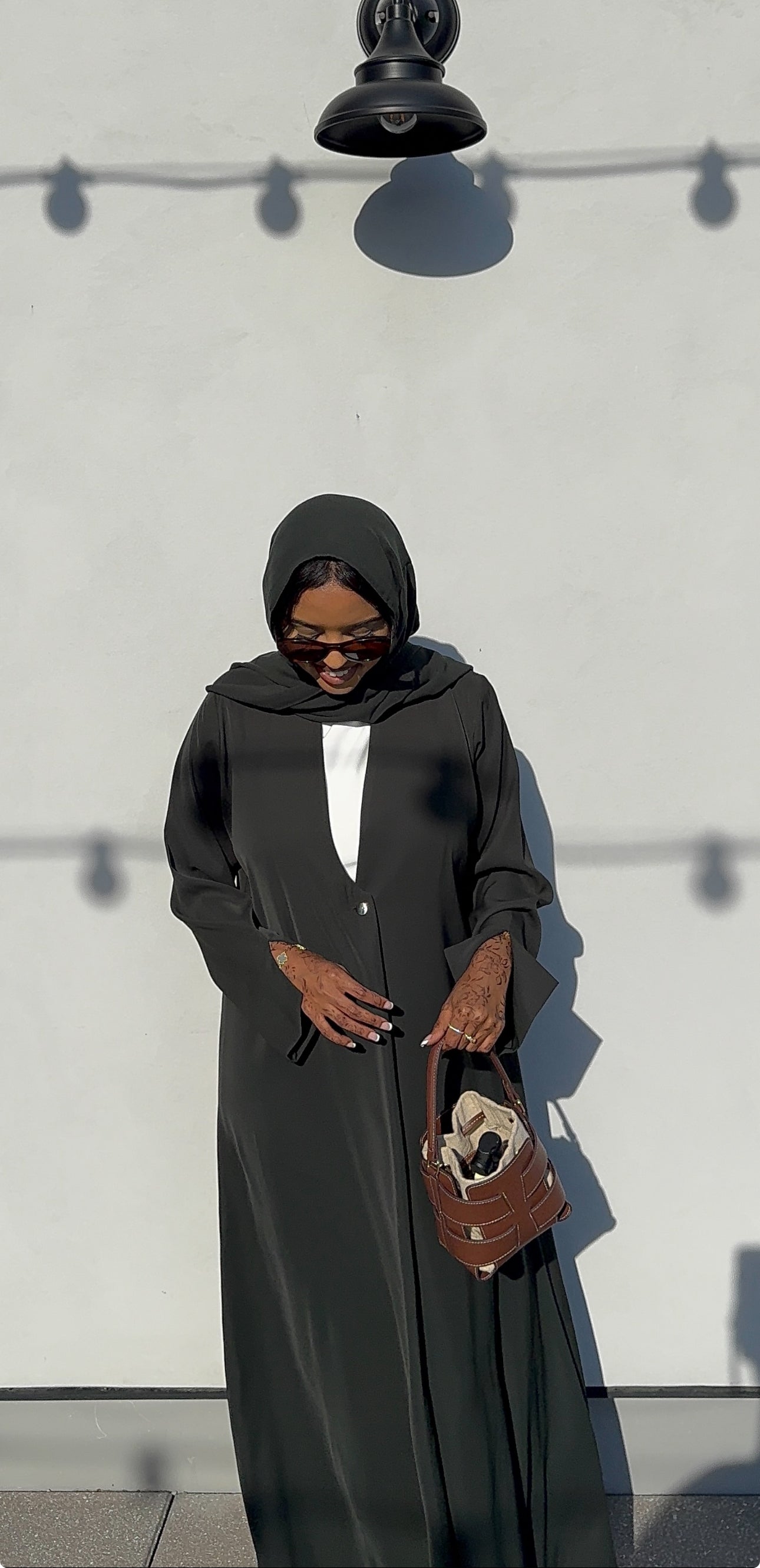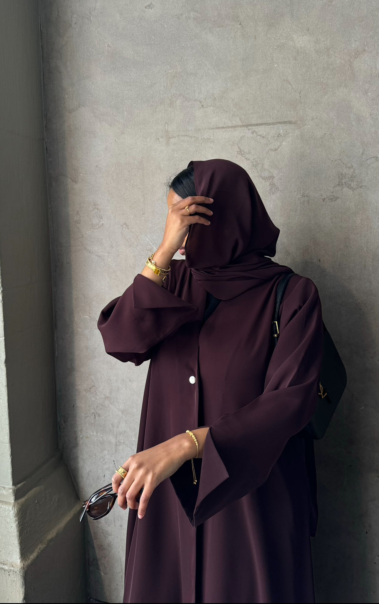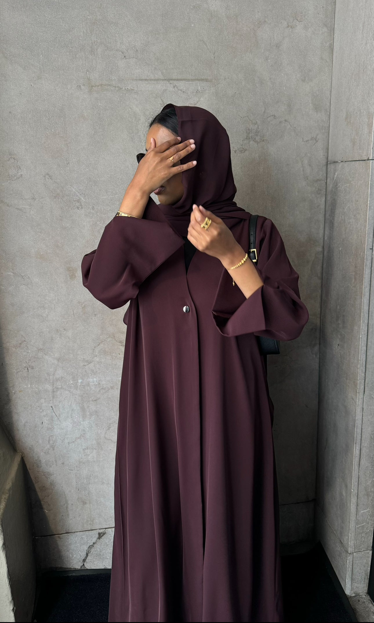 A high quality abaya with a button closure both elegant and practical. Made from premium heavy nidha crepe fabric, offering a lightweight yet modest drape. The abaya features a tailored silhouette, with a button closure down the front, adding a touch of sophistication.